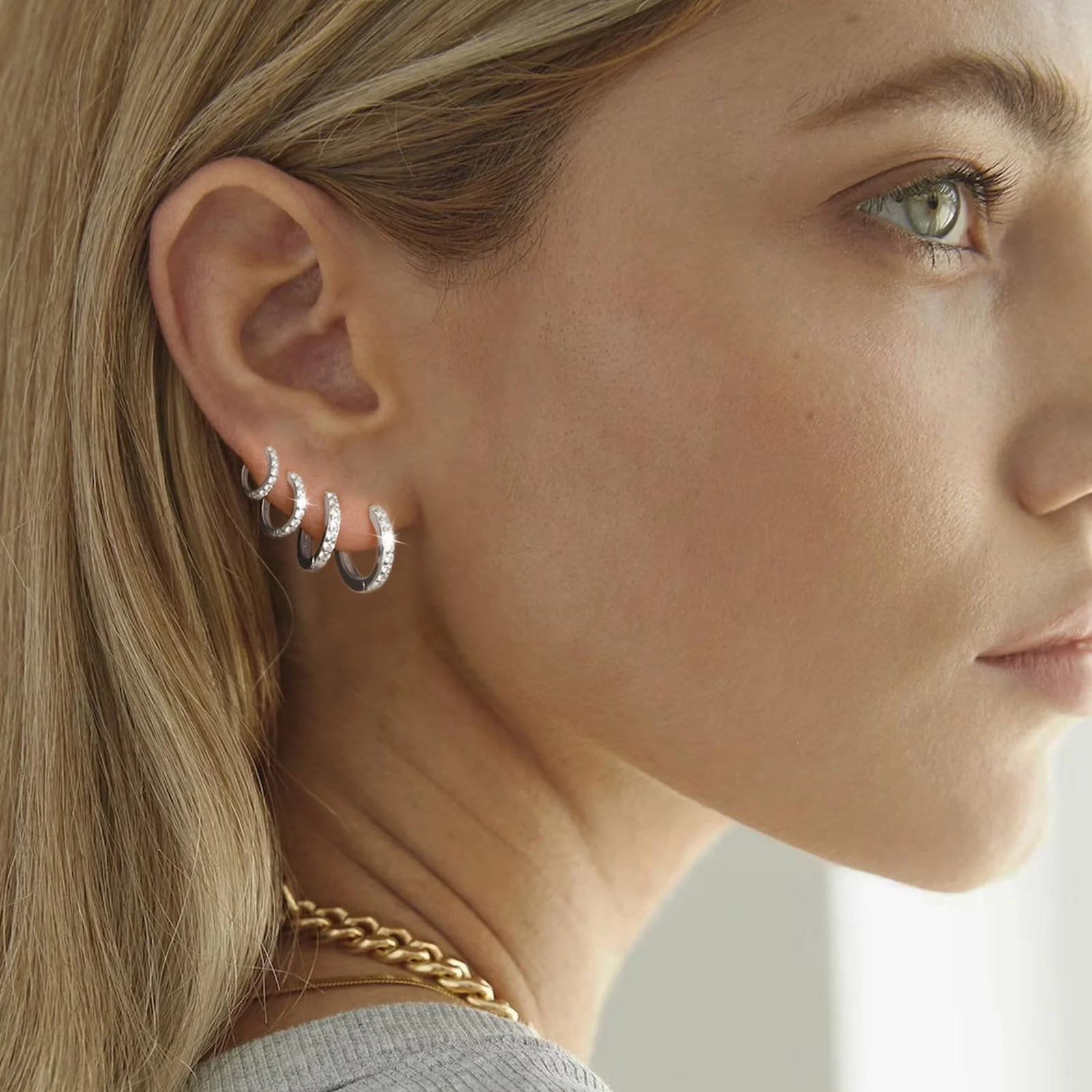 APSVO 4-Pair Silver Huggie Hoop Earring Set